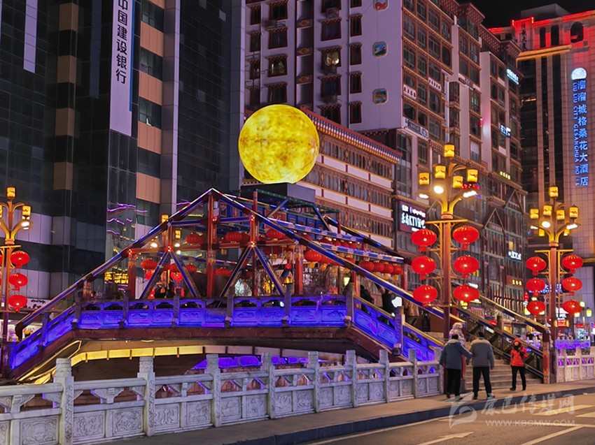 除了讓人眼前一亮的各種絢麗的花卉燈飾和被大紅燈籠、如意掛飾的大街小巷,最被市民津津樂道的莫過于中橋的明月景觀和東關U形廣場上的“五彩色神?!?。明月景觀又稱《世界的康定》,此景觀以月球為主體,在橋兩側再輔助以音符及五線譜造型。其寓意為情歌唱響世界,康定名揚世界。而矗立在東關廣場上的新增雕塑景觀就更意義非凡了。雕塑通體是以一頭雄壯的牦牛形象呈現(xiàn),牦牛下方的紅色高臺正前方鐫刻的是政府公仆一心為民的錚錚誓言?!罢臓I造喜慶洋洋的節(jié)日氛圍,讓我們感受到了濃濃的‘年味’,在黨和政府的關懷下,我們老百姓的生活一年更比一年好,幸福感也是一年更比一年強。”75歲高齡的扎西激動地跟記者分享著他的喜悅。