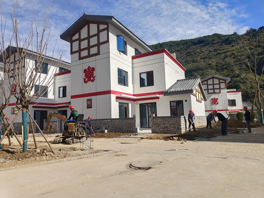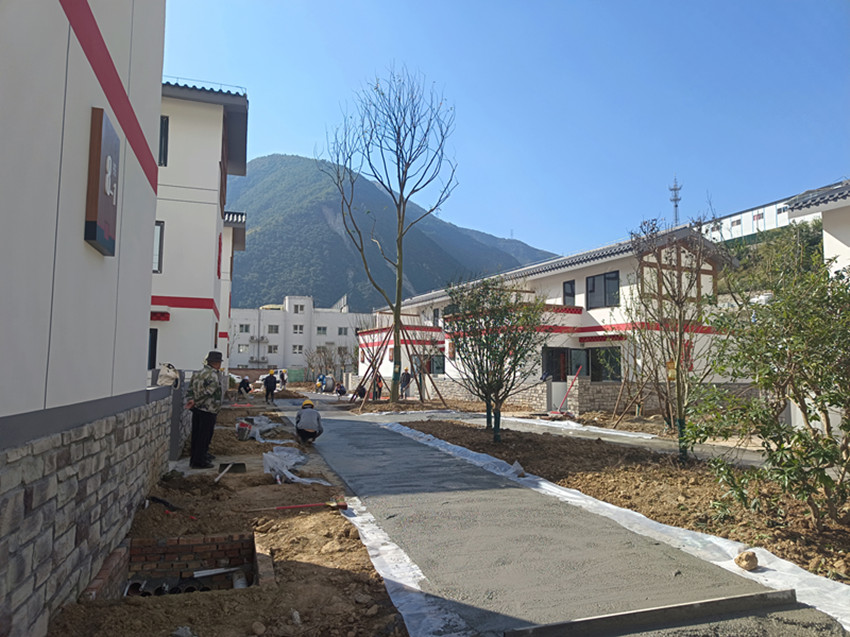 11月5日,記者走進(jìn)瀘定縣德威鎮(zhèn)奎武村“9·5”瀘定地震災(zāi)后重建集中安置點(diǎn),只見一幢幢繪有“如意結(jié)”和穿斗裝飾等瀘定傳統(tǒng)建筑元素以及“瀘定紅”“紅飄帶”等民族特色的安置房沿大渡河畔依次排開,一條條寬敞平整的水泥硬化道路將這些風(fēng)貌一致、戶型合理、結(jié)構(gòu)安全的安置房屋串聯(lián)起來。幾十名工人正在安置點(diǎn)內(nèi)忙碌,有的在鋪設(shè)路面、有的在栽種綠化樹、有的在搬運(yùn)廢渣……,拿到鑰匙的部分村民正在進(jìn)行室內(nèi)裝修,現(xiàn)場(chǎng)一派繁忙景象。