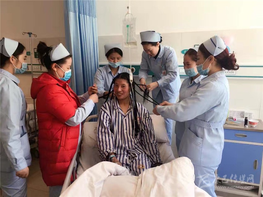手術前,肝膽二科的護士們按照藏族習俗,為降東瑪編制吉祥發(fā)辮。