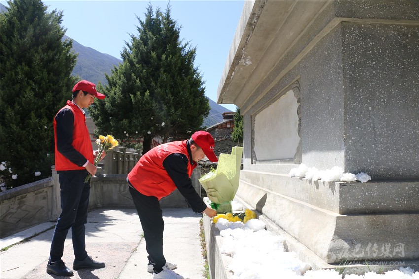 “圣潔尚巴”服務(wù)隊到烈士墓祭奠烈士。