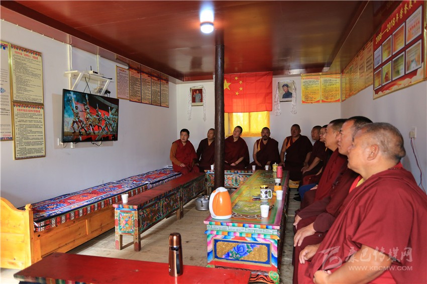 還不到10點(diǎn),桑批嶺寺僧侶50多歲的洛絨益西和70多名僧侶就圍坐在電視機(jī)前等候,觀看慶祝大會上盛大的閱兵式直播。當(dāng)看完習(xí)近平主席的講話和氣勢恢宏的閱兵式后,洛絨益西滿是激動(dòng)和自豪,表示將加強(qiáng)佛學(xué)修為,為寺廟發(fā)展和社會和諧多做貢獻(xiàn)。