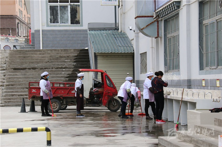 記者了解到,康定市民族中學(xué)實(shí)行半封閉式管理,走讀學(xué)生早上到校后,直到晚上放學(xué)才能出校門,午餐和晚餐都在學(xué)校就餐,學(xué)校食堂外也安裝了紅外線測(cè)溫儀。中午12點(diǎn),原本是放學(xué)吃飯時(shí)間,該校初三學(xué)生沒有像往常一樣集中趕往食堂吃飯,而是由老師帶隊(duì)分批次、有組織的分散就餐,杜絕打堆吃飯,減少不必要的聚集。餐后,食堂工作人員又將食堂地板反復(fù)清掃,之后統(tǒng)一進(jìn)行消毒。