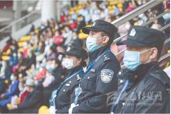 “請出示你的身份證,配戴好口罩。”“大哥你找錯方向了,你是往那邊走?!薄鞍荩愕奈恢檬峭筮呑??!薄诒遍T體育場,民警除了安保執(zhí)勤以外,還幫助行動不方便的群眾找尋座位,或為咨詢的群眾答疑解惑。