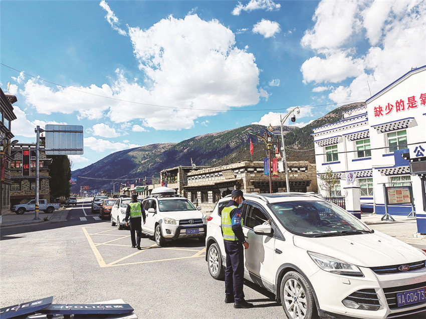在巴塘縣公安局竹巴龍派出所,21名民輔警負責(zé)從西藏返川人員的查緝和疫情防控。每天對300多輛車和600余名旅客進行測溫、查健康碼、行程卡,協(xié)助開展核酸檢測等,他們不敢有半點馬虎。所長居勉表示,嚴(yán)格按照州、縣防控要求,大家對所有車輛進行編號排隊,實行首尾車制統(tǒng)一護送至縣城集中隔離點?!耙咔殛P(guān)鍵時刻絕對不能掉鏈子,干工作必須要認真負責(zé)?!本用阊a充說。