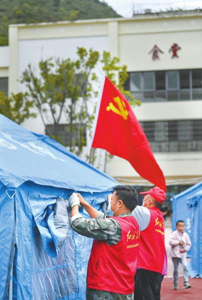 正忙著在震中搭建安置帳篷的他,正是這些天刷屏的“刨哥”主角,徒手從廢墟中“刨”出被困人員的特警。9月5日12時52分,瀘定縣6.8級地震發(fā)生后,陸云濤同州公安局特警支隊240名特戰(zhàn)隊員第一時間集結(jié),于當天下午2點20分奔赴至磨西鎮(zhèn),是第一波抵達震中的救援力量。