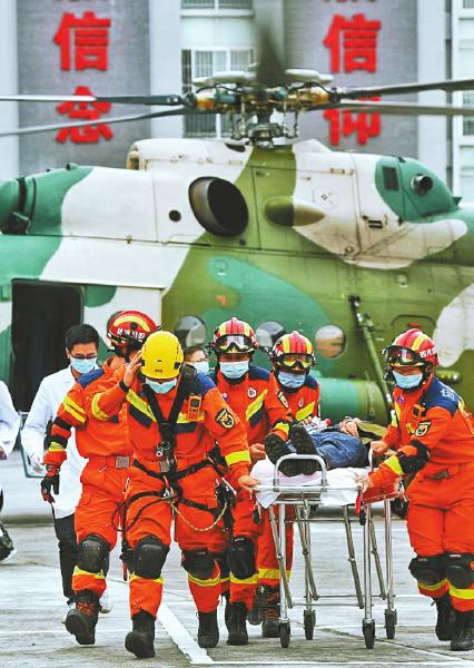 當天一早,率先得以進入共和村的是四川省地震救援指揮部調(diào)派的直升機,接走了一名重傷員,到13時許,6名重傷者全部轉(zhuǎn)移。與此同時,四川森林消防總隊特勤大隊、成都消防救援支隊特勤大隊等多支救援力量也行進在尋找通往“孤島”的“路”上。陸云濤同特警隊員們是15時左右到達共和村的,隨即展開物資分派、轉(zhuǎn)移傷員和人數(shù)清點工作。