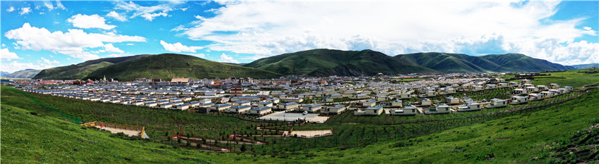 色達(dá)縣全境海拔大都在4000米以上,長冬無夏,年平均溫度-5℃,大氣含氧量不及低海拔地區(qū)的60%。為改善貧困群眾的生活條件,2017年,色達(dá)縣啟動(dòng)了易地扶貧搬遷集中安置,對口幫扶的溫江區(qū)投入資金4775萬元,又專門追加320萬元用于社區(qū)及周邊環(huán)境綠化。