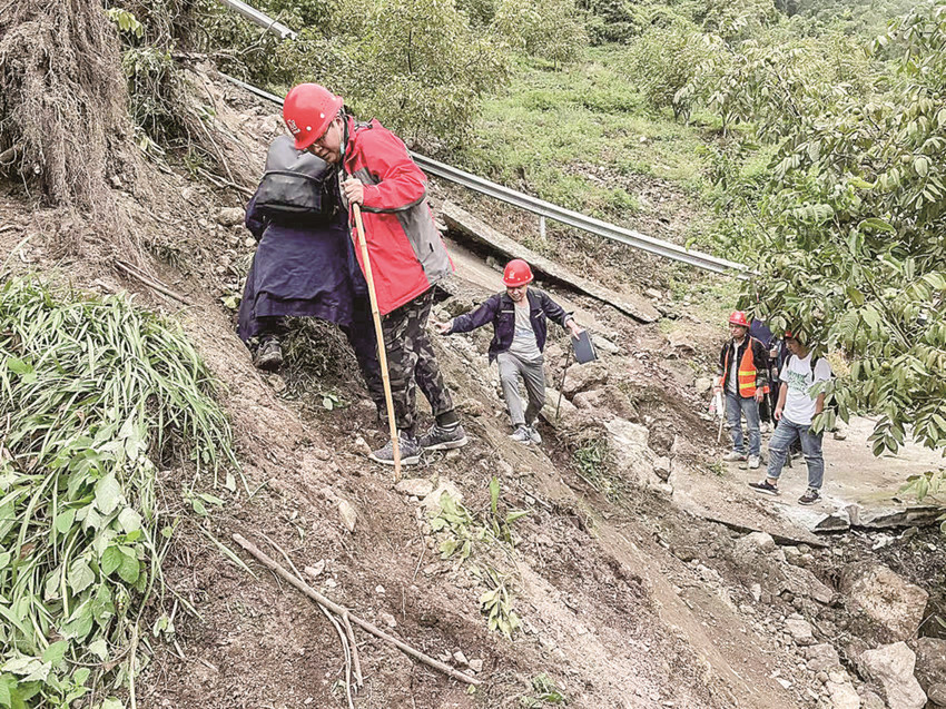 州自然資源和規(guī)劃局工作人員前往磨西鎮(zhèn)地震災(zāi)區(qū)查看情況進行排險。
