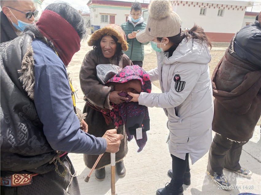 熊正茂(右二)幫助村民發(fā)放青稞種子。