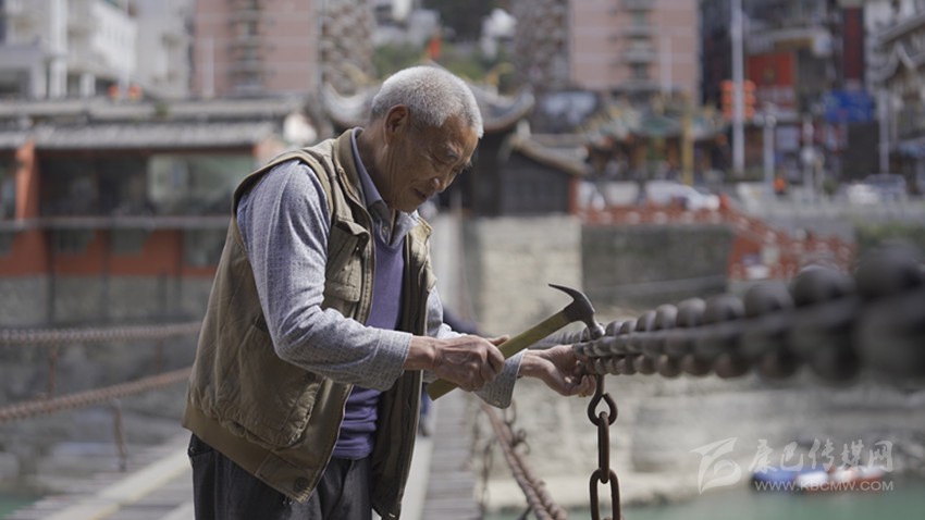 姚先貴每天堅持走一遍鐵索橋,檢查鐵索安全。