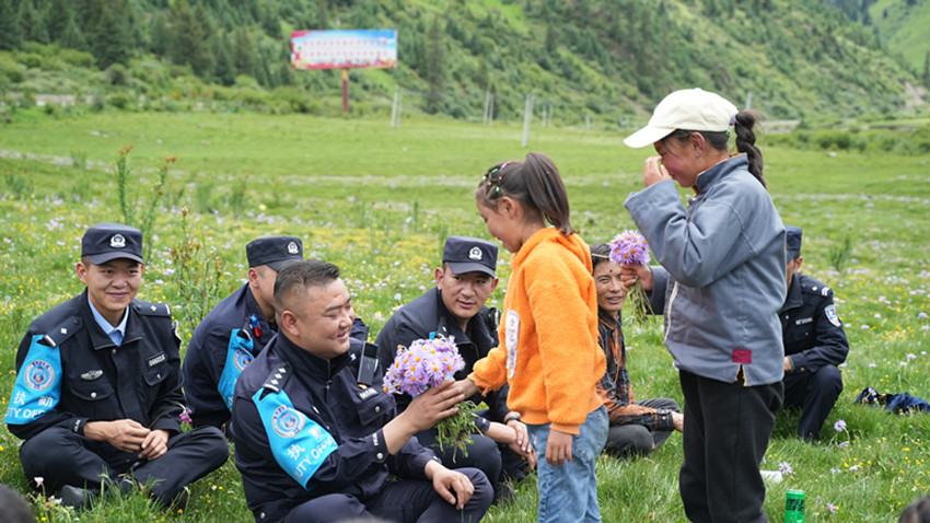 高照洪要求派出所大門24小時都為群眾敞開,保證服務不缺位。為找到牧民丟失的21頭牦牛,他帶領戰(zhàn)友兩天兩夜翻雪山、住牛棚;為保護牧民牦牛不被野狼侵擾,他帶領戰(zhàn)友徹夜守護;為化解矛盾糾紛,他可以徹夜釋法明理;牧場遷徙,總有他與民同行的身影……今年7月11日,他率隊“云上護航”夏季牧場遷徙,在海拔4800米的昌戈村牧場上演警察版超真實“向云端”,被《人民日報》、新華社、人民網(wǎng)等主流媒體相繼集中報道。