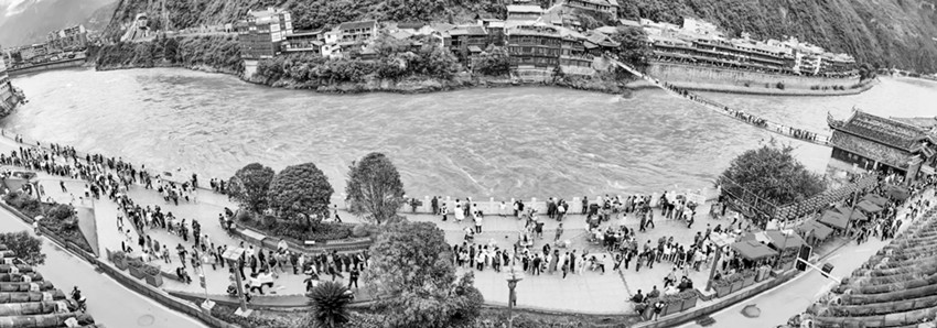 游客爭(zhēng)相一睹瀘定橋風(fēng)采。