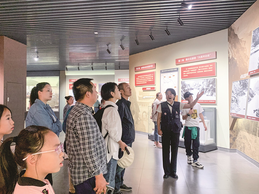 10月1日,瀘定橋游人如潮,瀘定橋革命文物陳列館和勇士路長征文化主題浮雕群周邊道路車水馬龍。游客們仔細(xì)觀看館藏文物、資料,細(xì)心聽取講解員講解,憶苦思甜,深刻體會(huì)那段跌宕起伏、波瀾壯闊的紅色歲月。隨著景區(qū)景點(diǎn)基礎(chǔ)設(shè)施的完善,不少游客滿懷激情重走長征路,懷古賞今,感受紅色文化無窮魅力。